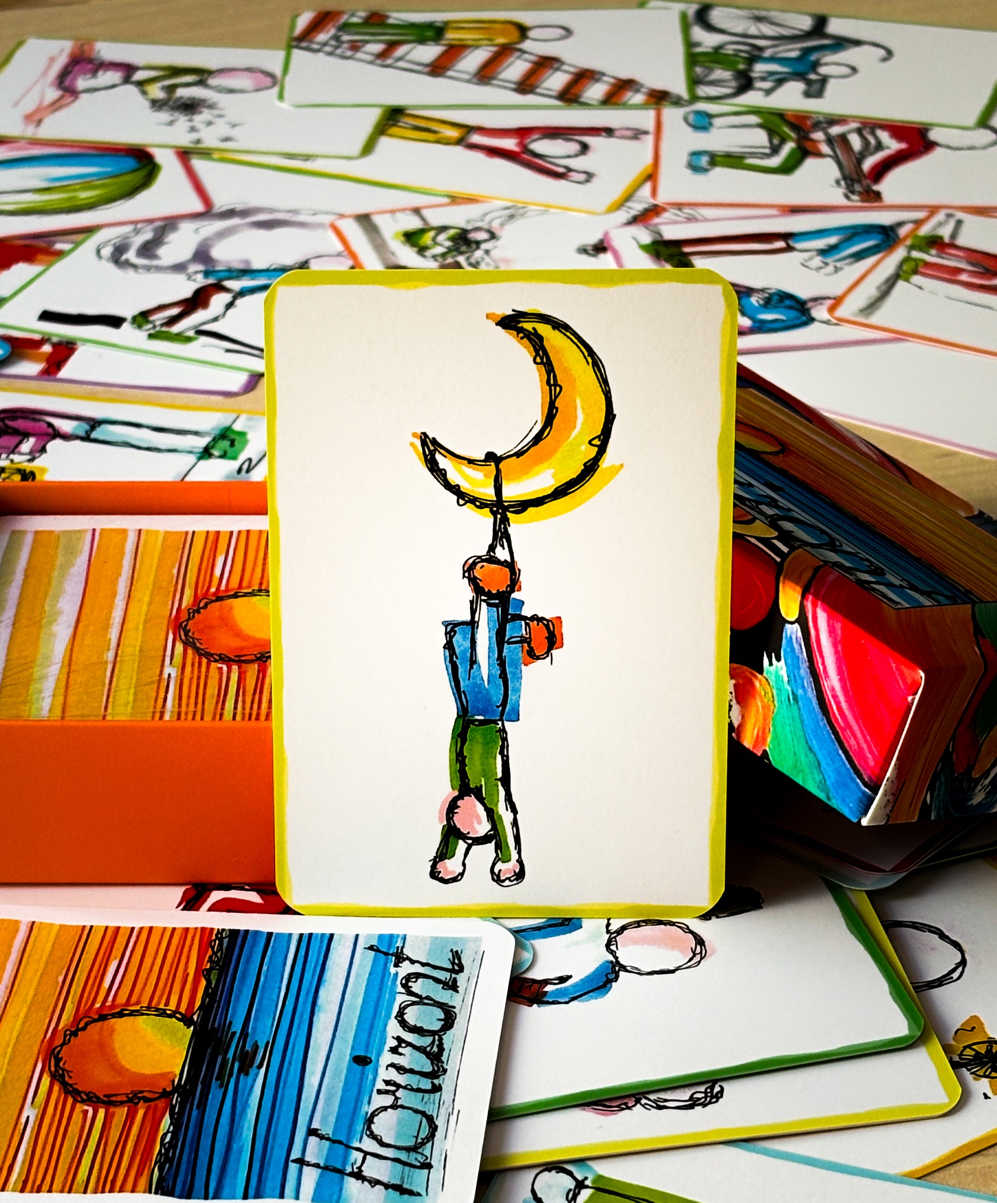 Karty sú bez textu s úmyslom rozšíriť fantáziu jedinca. Je to jedinečná ponuka, ktorá Vám pomôže pomenovať vlastné emócie.